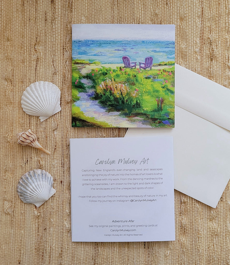 Each fine art note card features a print of my original coastal paintings — inspired by quiet beaches, gentle waves, and the peaceful light of New England’s shores. They’re perfect for thank-you notes, weddings, sympathy messages, or a simple hello to brighten someone’s day.